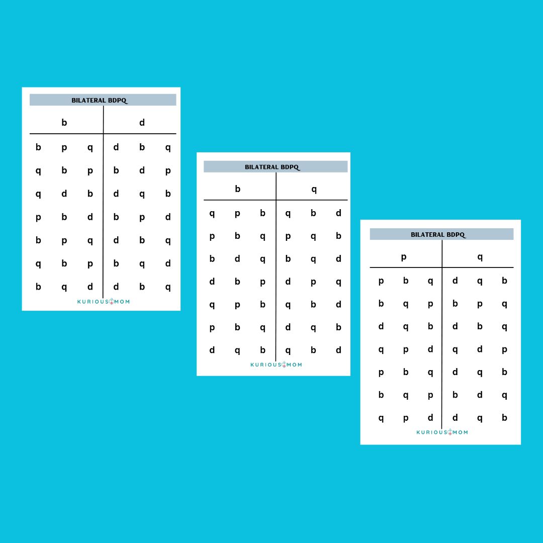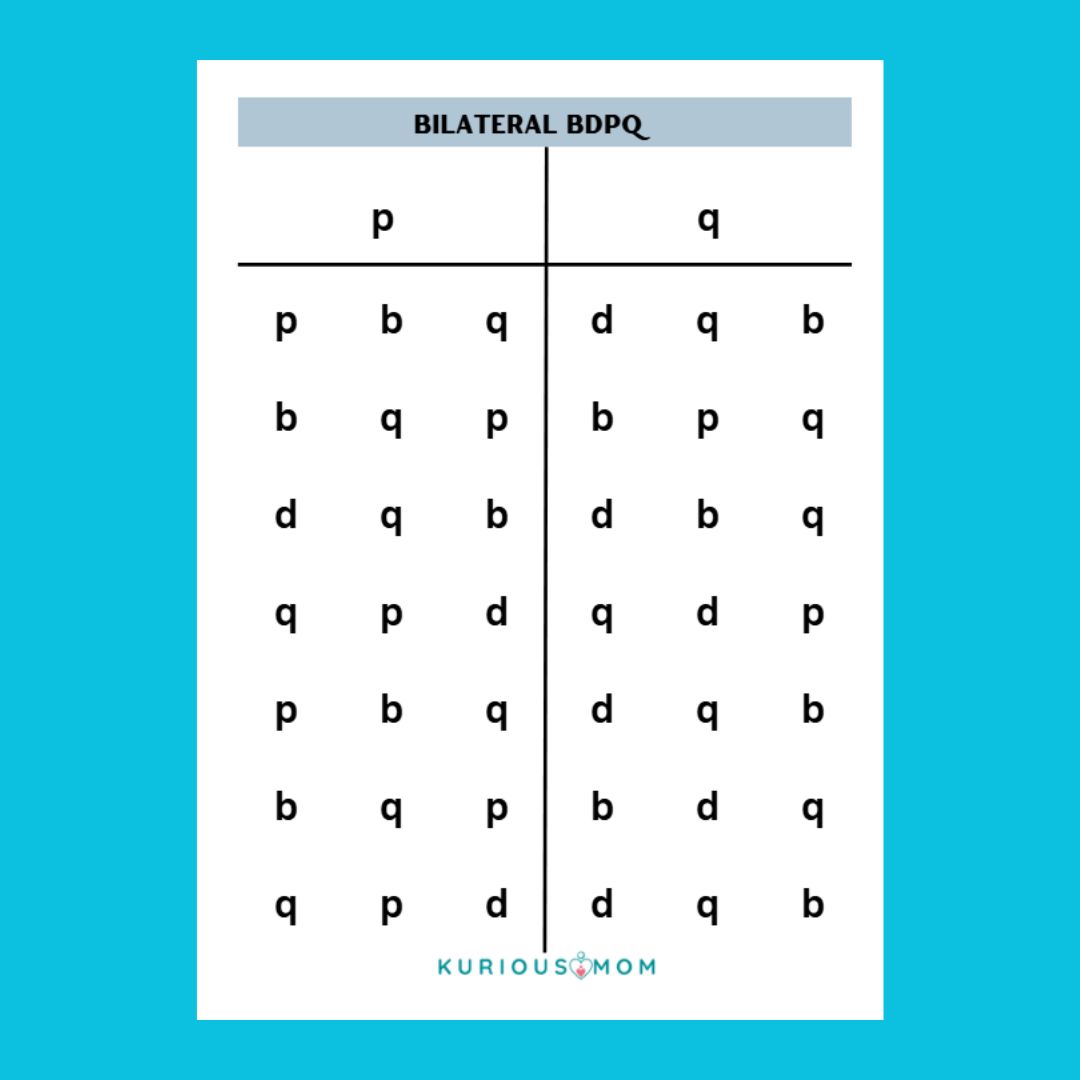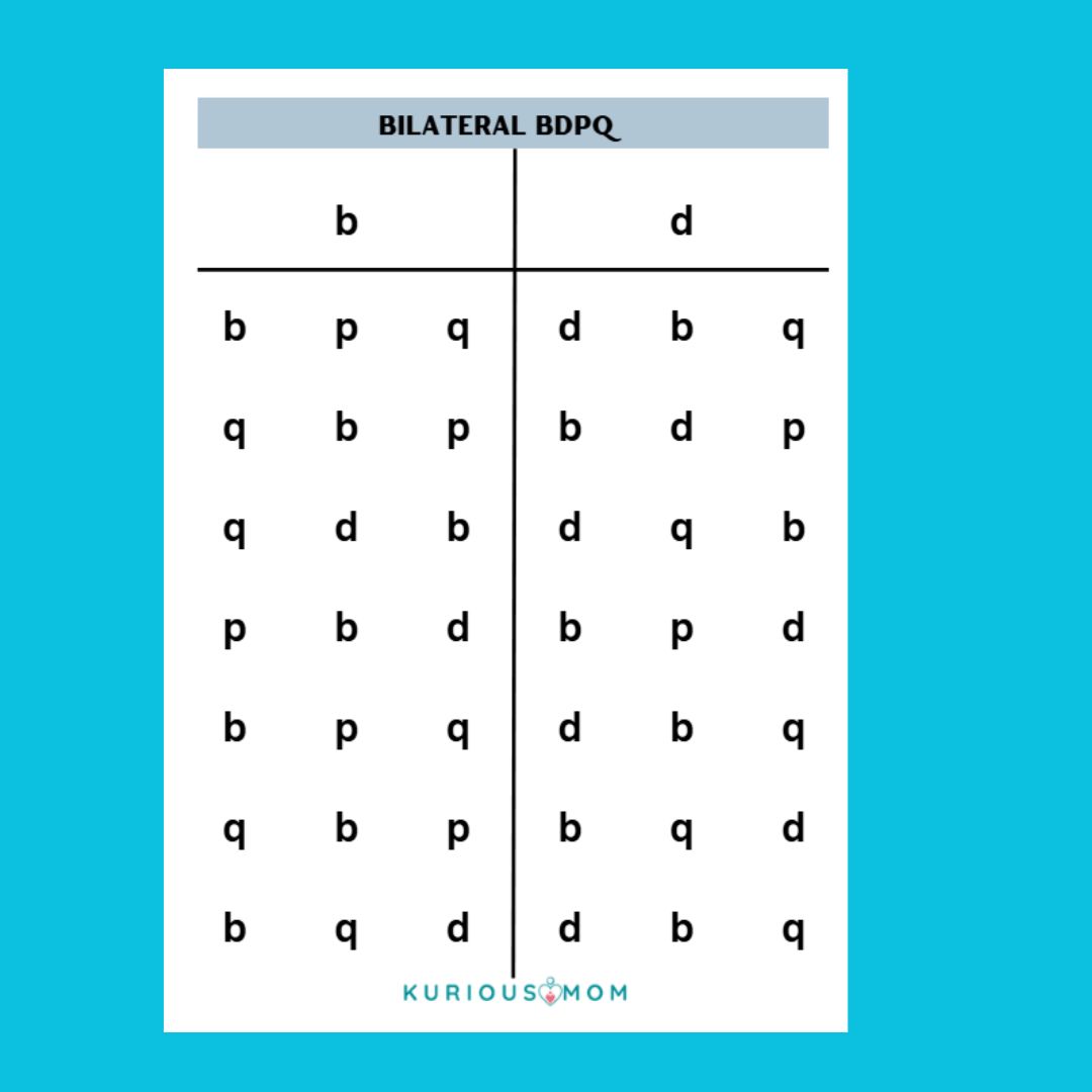 - Use both left and right hand fingers to scan the columns and circle the correct letter (b, d, p, or q).